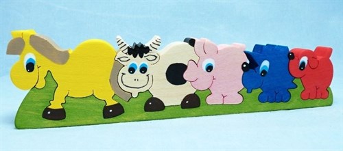 Řada domácích zvířat střední. - kůň, kráva, prasátko, ježek, pes.
